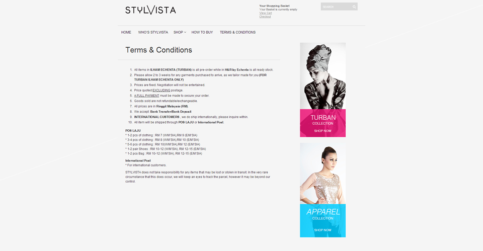 Laman sesawang e-commerce dibina untuk stylvista. Menggunakan kerangka Wordpress. Menggunakan konsep minimal bertujuan menonjolkan produk. Kemaskini rekabentuk dilaksana pada awal bulan Oktober 2014.